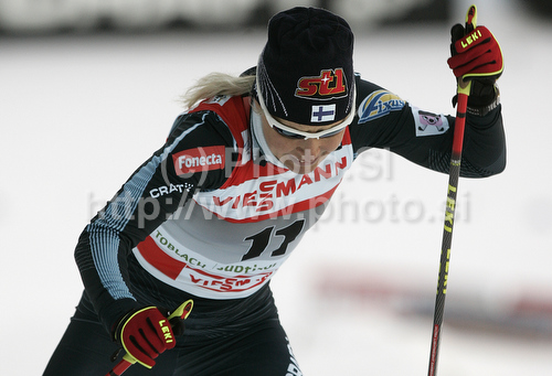 : Riitta-Liisa Roponen of Finland skiing during qualifications for women sprint race of Dobiacco-Toblach stage of Tour de Ski 2011. Sprint race of Tour de ski was held on Wednesday, 5th of January 2011 in Dobiacco-Toblach, Italy.