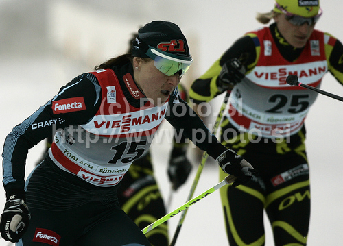 : Aino-Kaisa Saarinen of Finland skiing during finals of women sprint race of Dobiacco-Toblach stage of Tour de Ski 2011. Sprint race of Tour de ski was held on Wednesday, 5th of January 2011 in Dobiacco-Toblach, Italy.