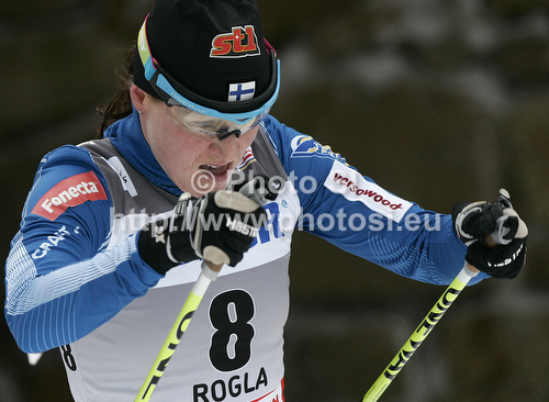 : Aino-Kaisa Saarinen of Finland skiing during women 10km classic race of FIS cross country skiing World cup race in Rogla, Slovenia. Women 10km classic race of FIS cross country skiing World cup was held on Rogla, Slovenia, on Saturday, 17th of December 2011.