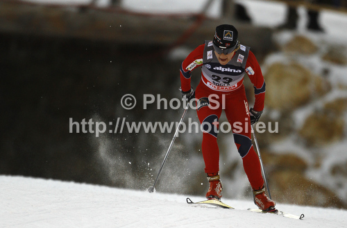: Maiken Caspersen Falla of Norway skiing during qualifications for women sprint free style race of FIS cross country skiing World cup race in Rogla, Slovenia. Women sprint race of FIS cross country skiing World cup was held on Rogla, Slovenia, on Sunday, 18th of December 2011.