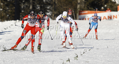 : Winner Maiken Caspersen Falla of Norway (L) followed by second placed Chandra Crawford of Canada and third placed Ida Ingemarsdotter of Sweden in finals of women sprint free style race of FIS cross country skiing World cup race in Rogla, Slovenia. Women sprint race of FIS cross country skiing World cup was held on Rogla, Slovenia, on Sunday, 18th of December 2011.