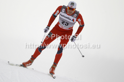 : Niklas Dyrhaug of Norway skiing in qualifications for men sprint free style race of Tour de Ski race of FIS cross country skiing World cup race in Toblach-Dobbiaco, Italy. Men sprint race, stage 6 of Tour de Ski and FIS cross country skiing World cup was held on Toblach-Dobbiaco, Italy, on Wednesday, 4th of January 2012.