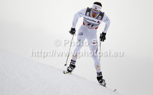 : Marcus Hellner of Sweden skiing in qualifications for men sprint free style race of Tour de Ski race of FIS cross country skiing World cup race in Toblach-Dobbiaco, Italy. Men sprint race, stage 6 of Tour de Ski and FIS cross country skiing World cup was held on Toblach-Dobbiaco, Italy, on Wednesday, 4th of January 2012.