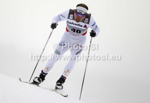 : Fredrik Jonsson of Sweden skiing in qualifications for men sprint free style race of Tour de Ski race of FIS cross country skiing World cup race in Toblach-Dobbiaco, Italy. Men sprint race, stage 6 of Tour de Ski and FIS cross country skiing World cup was held on Toblach-Dobbiaco, Italy, on Wednesday, 4th of January 2012.