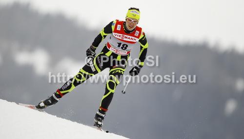 : Anouk Faivre Picon of France skiing in qualifications for women sprint free style race of Tour de Ski race of FIS cross country skiing World cup race in Toblach-Dobbiaco, Italy. Women sprint race, stage 6 of Tour de Ski and FIS cross country skiing World cup was held on Toblach-Dobbiaco, Italy, on Wednesday, 4th of January 2012.