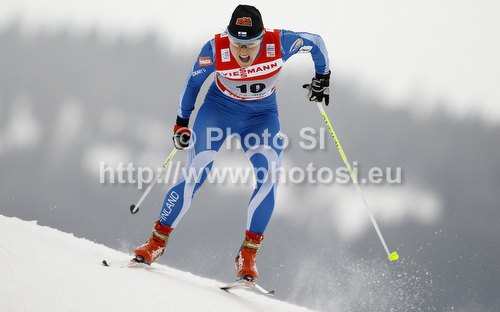 : Aino-Kaisa Saarinen of Finland skiing in qualifications for women sprint free style race of Tour de Ski race of FIS cross country skiing World cup race in Toblach-Dobbiaco, Italy. Women sprint race, stage 6 of Tour de Ski and FIS cross country skiing World cup was held on Toblach-Dobbiaco, Italy, on Wednesday, 4th of January 2012.