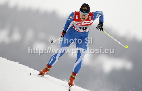 : Aino-Kaisa Saarinen of Finland skiing in qualifications for women sprint free style race of Tour de Ski race of FIS cross country skiing World cup race in Toblach-Dobbiaco, Italy. Women sprint race, stage 6 of Tour de Ski and FIS cross country skiing World cup was held on Toblach-Dobbiaco, Italy, on Wednesday, 4th of January 2012.