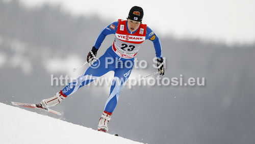 : Krista Lahteenmaki of Finland skiing in qualifications for women sprint free style race of Tour de Ski race of FIS cross country skiing World cup race in Toblach-Dobbiaco, Italy. Women sprint race, stage 6 of Tour de Ski and FIS cross country skiing World cup was held on Toblach-Dobbiaco, Italy, on Wednesday, 4th of January 2012.