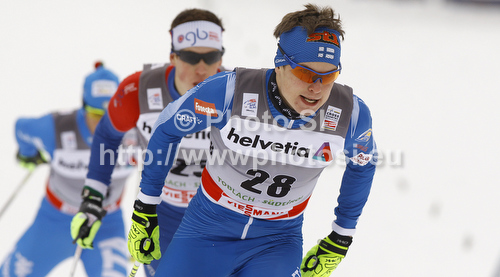 Toblach ,Italy - 04.01.2012 : Ari Luusua of Finland skiing in finals of men sprint free style race of Tour de Ski race of FIS cross country skiing World cup race in Toblach-Dobbiaco, Italy. Men sprint race, stage 6 of Tour de Ski and FIS cross country skiing World cup was held on Toblach-Dobbiaco, Italy, on Wednesday, 4th of January 2012. Photo by: Primoz Jeroncic