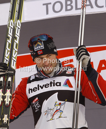 Toblach ,Italy - 04.01.2012 : Sprint leader Petter Northug of Norway celebrates after men sprint free style race of Tour de Ski race of FIS cross country skiing World cup race in Toblach-Dobbiaco, Italy. Men sprint race, stage 6 of Tour de Ski and FIS cross country skiing World cup was held on Toblach-Dobbiaco, Italy, on Wednesday, 4th of January 2012. Photo by: Primoz Jeroncic