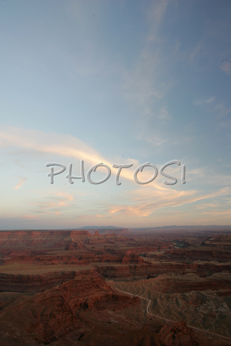 : Sunset over Canyonlands, Utah, USA, from Dead Horse Point in Dead Horse Point State park, Utah, USA. Canyonlands preserves a wilderness of rock at the heart of the Colorado Plateau. Water and gravity have been the prime architects of this land, cutting flat layers of sedimentary rock into hundreds of canyons, mesas, buttes, fins, arches, and spires. At center stage are two canyons carved by the Green and Colorado rivers. Surrounding the rivers are vast and very different regions, Island in the Sky on north, the Maze at west and the Needles at east. Canyonlands national park is located near Moab, Utah, USA.