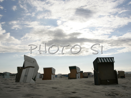 Warnemunde ,Germany - 12.07.2008 : Beach chairs are abandoned in windy summer evening on sandy beaches of North Germanys tourist resort Warnemunde. Temperatures around +18 degres of Celsius and strong wind made bathers to leave early, and wind had its own way to play with sand and beach equipment on endless Baltic sandy beaches. Photo by: Primoz Jeroncic