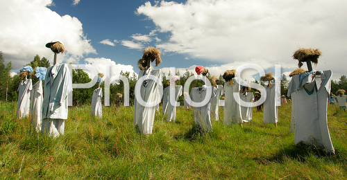 Suomussalmi ,Finland - 18.07.2008 : The Silent People. The almost one thousand strong band that makes up the Silent People suddenly emerges before the passing motorist like some great stroke of magic. In the morning wih he light behind them, this motionless army appears morose, even menacing. However, as the day progress their countenance brightens up and with the setting of the sun, they present a distinctly jolly and colorful picture.