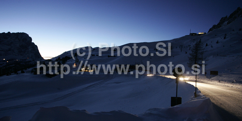 : Landscape around Gardena pass in Val Gardena, Italy on cold winter evening of 18th of December 2010.