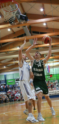 Radovljica ,Slovenia - 18.08.2005 : First of two friendly matches between Slovenia and Finland was played in Radovljica. Slovenia won the match with 88:43. Primoz Brezec of Slovenia was best scorer of the game with 16 points scored in 22:11minutes of his playtime. Photo by: Primoz Jeroncic/PhotoSI