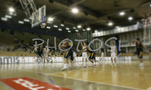 : Players of Union Olimpija and KK Zagreb during match of NLB League between Union Olimpija, Ljubljana, Slovenia and KK Zagreb, Croatia. Match ended with victory of Union Olimpija, who defeated Zagreb with 87:76. Match between KK Union Olimpija and Zagreb was played in Tivoli Arena in Ljubljana, Slovenia on 9. December 2006.