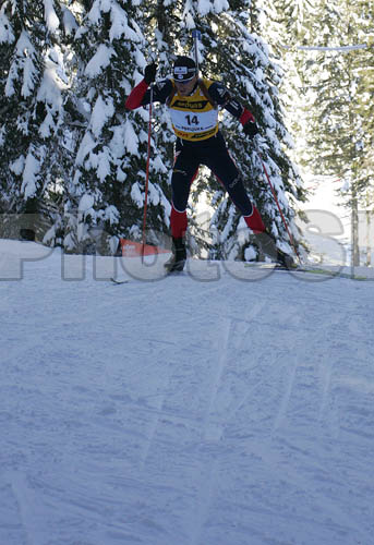 : Julien Robert of France skiing during men sprint race of e.on Ruhrgas IBU Biathlon World cup which was held on Pokljuka, Slovenia on 8.March 2006.