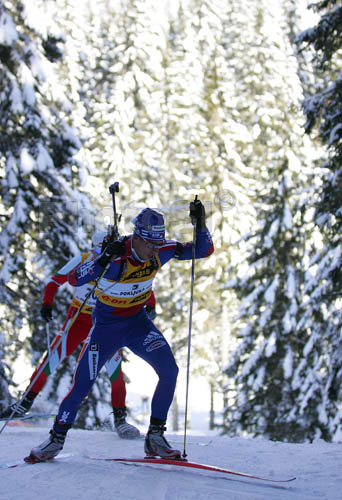 Pokljuka ,Slovenia - 08.03.2006 : Jay Hakkinen of Usa skiing during men sprint race of e.on Ruhrgas IBU Biathlon World cup which was held on Pokljuka, Slovenia on 8.March 2006. Photo by: Primoz Jeroncic/PhotoSI