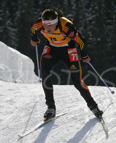 : Sven Fischer of Germany skiing during men sprint race of e.on Ruhrgas IBU Biathlon World cup which was held on Pokljuka, Slovenia on 8.March 2006.
