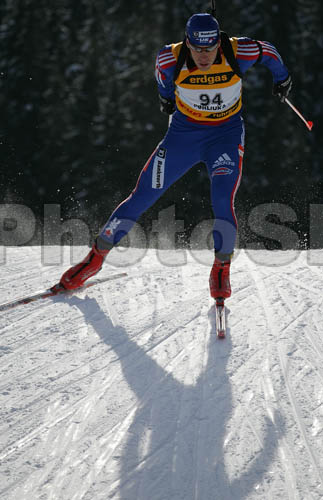 : Jeremy Teela of Usa skiing during men sprint race of e.on Ruhrgas IBU Biathlon World cup which was held on Pokljuka, Slovenia on 8.March 2006.
