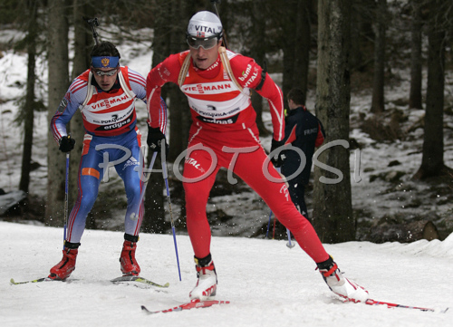 : Frode Andresen of Norway skiing in men sprint race on Pokljuka, Slovenia. IBU Biathlon World Cup sprint race was held on Pokljuka, Slovenia on 18th of January 2007.