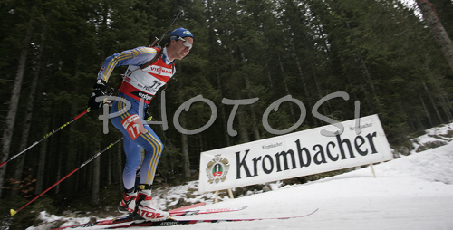 : Magnus Jonsson of Sweden skiing in men sprint race on Pokljuka, Slovenia. IBU Biathlon World Cup sprint race was held on Pokljuka, Slovenia on 18th of January 2007.