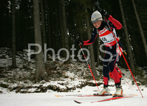 : Pauline Macabies of France skiing in women sprint race of e.on Ruhrgas IBU Biathlon World Cup. Women individual race of e.on Ruhrgas IBU Biathlon World Cup was held in Pokljuka, Slovenia, on 13th of December 2007.