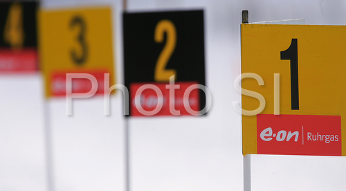 : Shooting place during women relay race of e.on Ruhrgas IBU Biathlon World Cup. Women relay race of e.on Ruhrgas IBU Biathlon World Cup was held in Pokljuka, Slovenia, on 16th of December 2007.