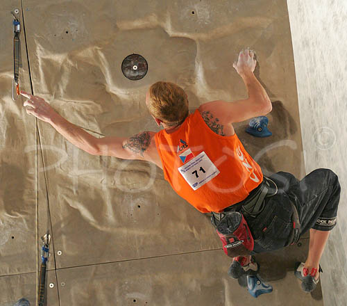 Kranj ,Slovenia - 19.11.2005 : Third placed after half final climb Tomas Mrazek of Czech is climbing his route during half final climb in Climbing World Cup which was held in Kranj between 19. and 20. November 2005. Half finals were won by Angela Eiter of Austria in women competition and Flavio Crespi of Italy in men competition. Both of winners reached top of the route which gives them advantage for next days finals. Photo by: Primoz Jeroncic/PhotoSI