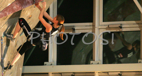 : Christine Schranz of Austria climbing in half finals of last IFSC Sport Climbing World cup of 2007 season. Semi finals for last IFSC Sport Climbing World Cup of 2007 season were held in Kranj, Slovenia on 17th of November 2007.
