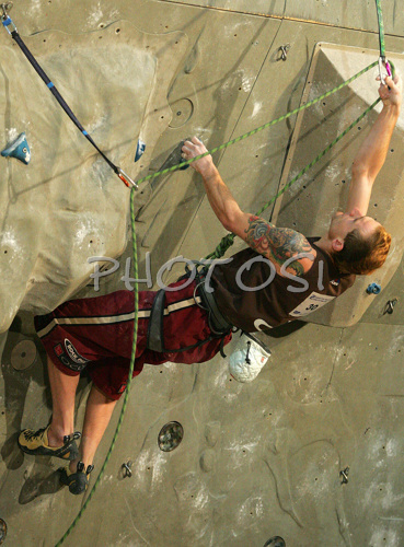 : Tomas Mrazek of Czech climbing during men finals of last IFSC Sport Climbing World cup of 2007 season. Final race of IFSC Sport Climbing World Cup of 2007 season was held in Kranj, Slovenia on 18th of November 2007.