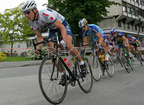 : Cyclists of elite category are competing during criterium road cycling race Around city of Kranj 2006 which was held in Kranj, Slovenia on 4th of June 2006.