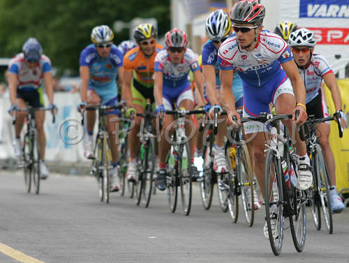 : Cyclists of elite category are competing during criterium road cycling race Around city of Kranj 2006 which was held in Kranj, Slovenia on 4th of June 2006.