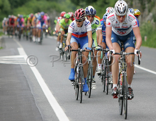 : Peloton at climb in Vrhnika, Slovenia during second stage of 13th Tour de Slovenie 2006 (13. dirka Po Sloveniji). Stage 2 in lenght of 183km lead cyclists from Medvode, Slovenia to Sveta Gora near Nova Gorica, Slovenia.