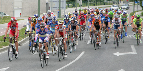 : Cyclists in second lap around Nova Gorica, Slovenia during third stage of 13th Tour de Slovenie 2006 (13. dirka Po Sloveniji). Third stage lead cyclists in lenght of 158km from Nova Gorica, Slovenia to top of Vrsic, Slovenia. Last uphill to Vrsic was also hardest uphill on this years Tour de Slovenia and it usually also decides winner of Tour.