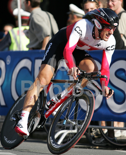 : Winner Cancellara Fabian of Switzerland riding during Men Elite Time trial race of Road Cycling World Championship in Salzburg, Austria. Elite Men Time trial race was held in Salzburg, Austria on 21. September 2006.