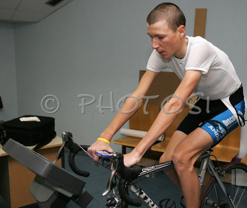 : Janez Brajkovic of Discovery Channel Pro Cycling Team is performing special sport testing under supervision of dr. Radoje Milic, specialist of sport testings. Tests were done at Faculty of sport in Ljubljana, Slovenia on 12th of February 2007.