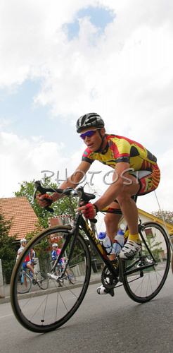 : Second placed Matej Stare of Perutnina Ptuj cycling through streets of Sencur, Slovenia during Grand prix of Sencur. Race in Sencur, Slovenia was held on 27th of April 2007.