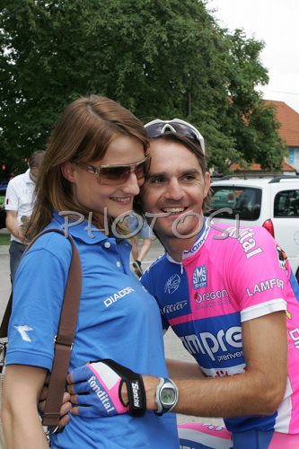 Sentjernej ,Slovenia - 13.06.2007 : Gorazd Stangelj of Lampre-Fondital with his girlfriend Simona before start of second stage of Tour de Slovenie 2007. Second stage in lenght of 163km lead cyclists from Sentjernej, Slovenia to Ljubljana, Slovenia, where finish line was in Ljubljana castle. Photo by: Mitja Smid Bricelj/PhotoSI