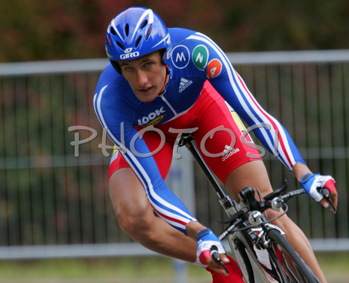 : Third placed Jerome Coppel of France riding in Men U23 Time trial race of UCI Road Cycling World Championships. Men U23 Time trial race was held on 26th of September 2007 in Stuttgart, Germany.
