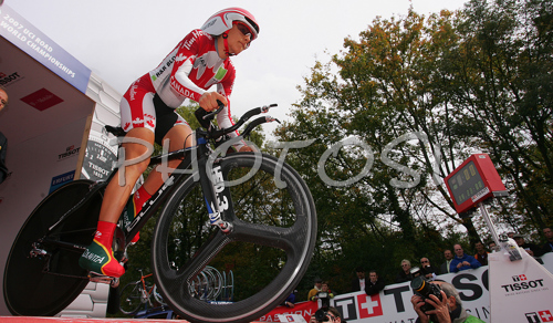 : Alex Wrubleski of Canada starting in Women Time Trial race of UCI Road Cycling World Championships. Women Time trial race was held on 26th of September 2007 in Stuttgart, Germany.