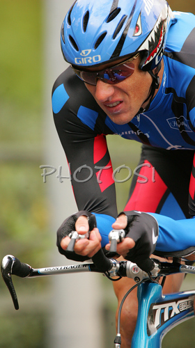 : Jason Mccartney of USA riding in Men Elite Time trial race of UCI Road Cycling World Championships. Men Elite Time trial race was held on 27th of September 2007 in Stuttgart, Germany.