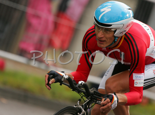 : 5th placed Sebastian Lang of Germany riding in Men Elite Time trial race of UCI Road Cycling World Championships. Men Elite Time trial race was held on 27th of September 2007 in Stuttgart, Germany.