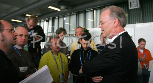 Improvised press conference was held in press center after official training session before Saturdays and Sundays road races of UCI Road Cycling World Championships. Official training on streets supposedly closed for traffic, was held on 28th of September 2007 in Stuttgart, Germany. Photo by: Primoz Jeroncic/PhotoSI