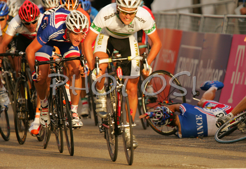 Stuttgart ,Germany - 29.09.2007 : Biel Kadri of France (L) and Martin Kohler of Switzerland (R) falling in sprint of Men U23 road races of UCI Road Cycling World Championships. Men U23 road race World Championships was held on 29th of September 2007 in Stuttgart, Germany. Photo by: Primoz Jeroncic/PhotoSI