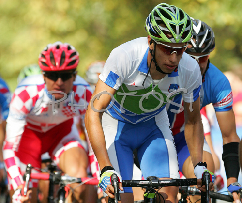 : Matej Mugerli of Slovenia riding during Men Elite road race of UCI Road Cycling World Championships. Men Elite road race World Championships was held on 30th of September 2007 in Stuttgart, Germany.