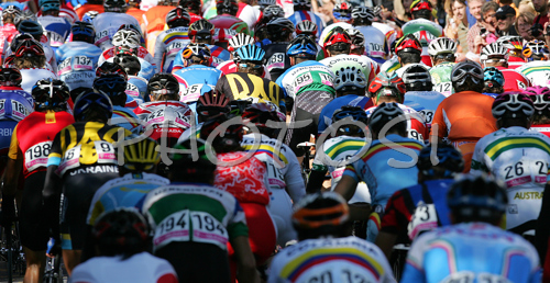 : Cyclists riding during Men Elite road races of UCI Road Cycling World Championships. Men Elite road race World Championships was held on 30th of September 2007 in Stuttgart, Germany.