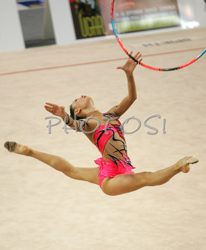: Aliya Yussupova of Kazakhstan performing during her exercise with hoop in Rhythmic gymnastics World Cup 2007. 9th Slovene Challenge Tournament in Rhythmic gymnastics and World Cup in Rhythmic gymnastics was held in Ljubljana, Slovenia on 26th of August 2007.