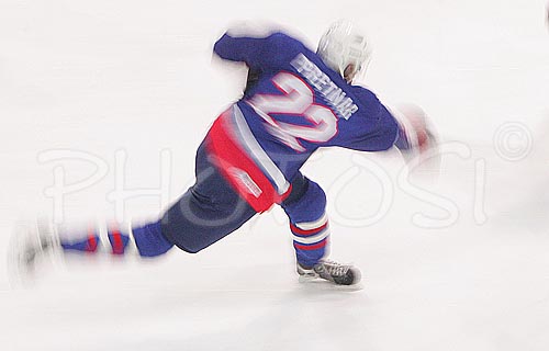 Bled ,Slovenia - 14.12.2005 : Klemen Pretnar of Slovenia shooting during ice hockey match between Slovenia and Denmark on Ice Hockey World Championship Division I, Group A. Denmark won with 3:2, which gives them good chances for winning tournament and qualifying for Elite Division. Photo by: Primoz Jeroncic/PhotoSI