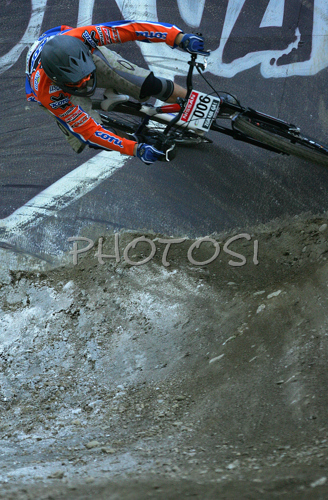 : Kamil Tatarkovic of Czech riding in last race of Men Four cross (4X) Nissan UCI Mountain Bike World Cup. Final race of MTB World Cup was held in Maribor, Slovenia, on 15th of September 2007.